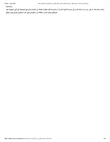 مﮭﺗﺎﯾﺣ ةدوﺟ نﯾﺳﺣﺗو ﻊﻣﺗﺟﻣﻟا دارﻓأ نﯾﻛﻣﺗ ﻲﻓ ﺎﮭﺗﻟﺎﺳر نﻣ ًﺎﻗﻼطﻧا ،ةرﺳﻷا بﻧﺎﺟﺑ نﯾﻧطاوﻣﻟا.