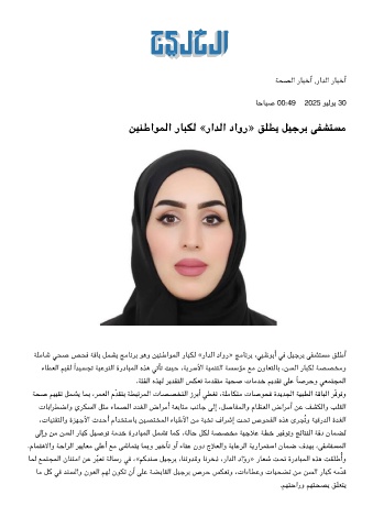 ﺔﻠﻣﺎﺷ ﺤﺻ ﺺﺤﻓ ﺔﻗﺎﺑ ﻞﻤﺸﻳ ﺞﻣﺎﻧﺮﺑ ﻮﻫو ﻦﻴﻨﻃاﻮﻤﻟا رﺎﺒﻟ «راﺪﻟا داور» ﺞﻣﺎﻧﺮﺑ ،ﺒﻇﻮﺑأ ﻓ ﻞﻴﺟﺮﺑ ﻔﺸﺘﺴﻣ ﻖﻠﻃأ