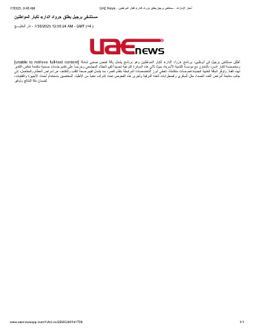 7/30/25, 9:48 AM UAE News - نﯾﻧطاوﻣﻟا رﺎﺑﻛﻟ «رادﻟا داور» ﻖﻠطﯾ لﯾﺟرﺑ ﻰﻔﺷﺗﺳﻣ - تارﺎﻣﻹا رﺎﺑﺧأ