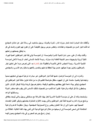 ،ةرﯾﺑﻛ ﺔﯾﻣھأ نﯾﻧطاوﻣﻟا رﺎﺑﻛ ﺔﺋﻓ ﻲﻟوﺗ ﺔﺳﺳؤﻣﻟا نأ ،ﺔﺳﺳؤﻣﻟﺎﺑ ةرﺳﻷا ﺔﯾﻣﻧﺗ ةرﺋاد رﯾدﻣ ،ﻲﻠﻋ لآ ءﺎﻓو تدﱠﻛأو
