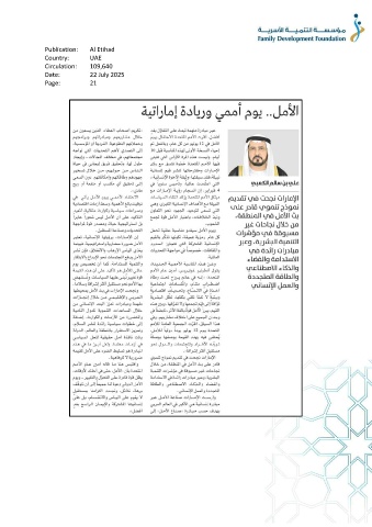 Publication: Al Etihad Country: UAE Circulation: 109,640 Date: 22 July 2025 Page: 21