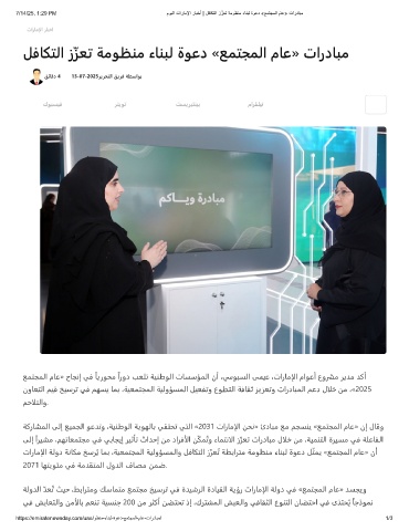 نوﺎﻌﺘﻟا ﻢﻴﻗ ﺦﻴﺳﺮﺗ ﻲﻓ ﻢﻬﺴﻳ ﺎﻤﺑ ،ﺔﻴﻌﻤﺘﺠﻤﻟا ﺔﻴﻟوﺆﺴﻤﻟا ﻞﻴﻌﻔﺗو عﻮﻄﺘﻟا ﺔﻓﺎﻘﺛ ﺰﻳﺰﻌﺗو تاردﺎﺒﻤﻟا ﻢﻋد لالﺧ ﻦﻣ ،«2025