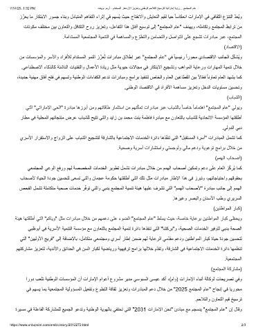 ةرﯾﺳﻣ ﻲﻓ ﺔﻠﻋﺎﻔﻟا ﺔﻛرﺎﺷﻣﻠﻟ ﻊﯾﻣﺟﻟا وﻋدﺗو ﺔﯾﻧطوﻟا ﺔﯾوﮭﻟﺎﺑ ﻲﻔﺗﺣﺗ ﻲﺗﻟا "2031 تارﺎﻣﻹا نﺣﻧ" ئدﺎﺑﻣ ﻊﻣ مﺟﺳﻧﯾ "ﻊﻣﺗﺟﻣﻟا مﺎﻋ" نإ لﺎﻗو