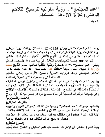 ﻲﺒظﻮﺑأ (زﻮﯿﻧ ﭧﻨﺋاﻮﭘ نﺎﺘﺴﮐﺎﭘ 12 ء2025 ﻮﯿﻟﻮﯾ) ﻲﻓ "ﻊﻤﺘﺠﻤﻟا مﺎﻋ" ﺪﺴﺠﯾ