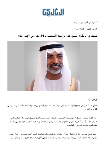 «تارﺎﻣﻹا ﻓ ًاﺮﻘﻣ 54 ـﺑ ﺔﻴﻔﻴﺼﻟا ﻪﺠﻣاﺮﺑ ًاﺪﻏ ﻖﻠﻄﻳ «ﻦﻃﻮﻟا قوﺪﻨﺻ