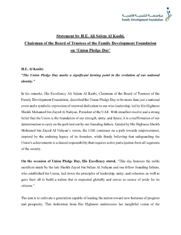 On the occasion of Union Pledge Day, His Excellency stated, “This day honours the noble