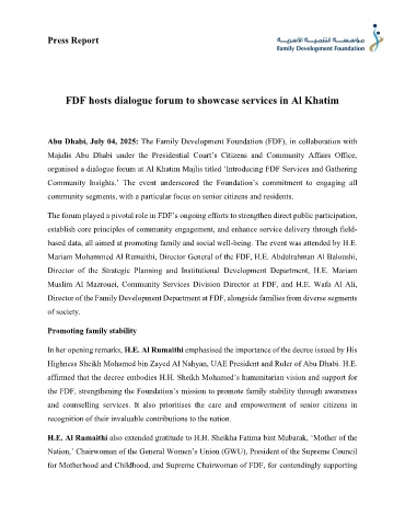 organised a dialogue forum at Al Khatim Majlis titled ‘Introducing FDF Services and Gathering