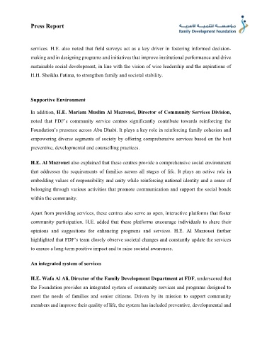 H.E. Al Mazrouei also explained that these centres provide a comprehensive social environment