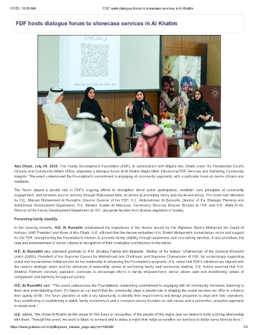 7/7/25, 10:09 AM FDF hosts dialogue forum to showcase services in Al Khatim