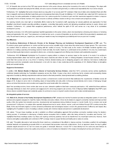 H.E. Al Rumaithi also pointed out that FDF pays special attention to the senior citizens, placing their demands at the centre of its strategies. This aligns with
