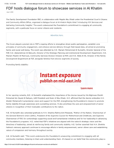 7/7/25, 10:10 AM FDF hosts dialogue forum to showcase services in Al Khatim - Middle East Business News and Information - mid-east.info