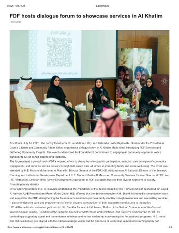Abu Dhabi, July 04, 2025: The Family Development Foundation (FDF), in collaboration with Majalis Abu Dhabi under the Presidential