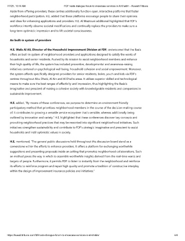 neighborhood participation. H.E. added that these platforms encourage people to share their opinions