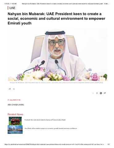 7/31/25, 11:08 AM Nahyan bin Mubarak: UAE President keen to create a social, economic and cultural environment to empower Emirati youth - Aletih…