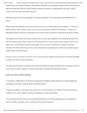 7/31/25, 11:08 AM Nahyan bin Mubarak: UAE President keen to create a social, economic and cultural environment to empower Emirati youth - Aletih…