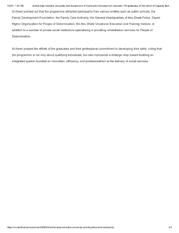 7/9/25, 1:56 PM United Arab Emirates University and Department of Community Development celebrate 130 graduates of 3rd cohort of Capacity Buil…