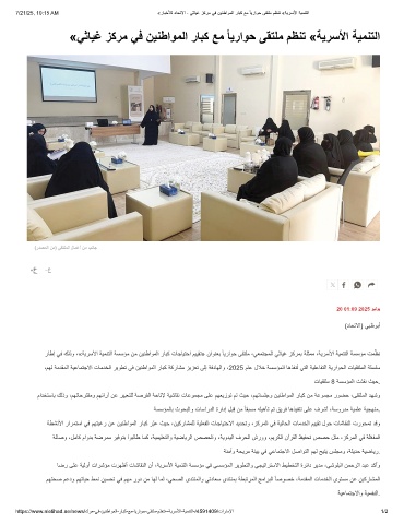 «ﻲﺛﺎﯾﻏ زﻛرﻣ ﻲﻓ نﯾﻧطاوﻣﻟا رﺎﺑﻛ ﻊﻣ ًﺎﯾراوﺣ ﻰﻘﺗﻠﻣ مظﻧﺗ «ﺔﯾرﺳﻷا ﺔﯾﻣﻧﺗﻟا