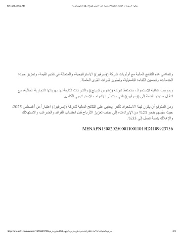 ،2025 ﺲﻄﺴﻏأ ﻦﻣ ارﺎﺒﺘﻋا ((ﻮﯿﻓﺮﺳ)) ﺔﻛﺮﺸﻟ ﺔﯿﻟﺎﻤﻟا ﺞﺋﺎﺘﻨﻟا ﻰﻠﻋ ﻲﺑﺎﺠﯾإ ﺮﯿﺛﺄﺗ ذاﻮﺤﺘﺳﻻا اﺬﮭﻟ نﻮﻜﯾ نأ ﻊﻗﻮﺘﻤﻟا ﻦﻣو