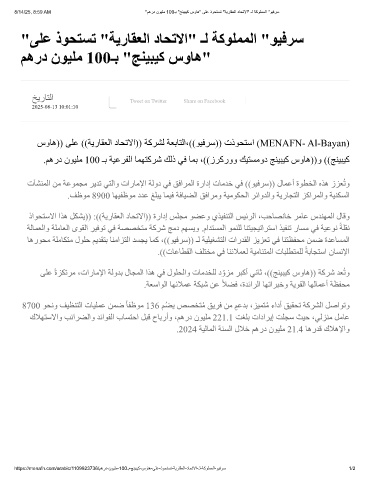 سوﺎھ)) ﻰﻠﻋ ((ﺔﯾرﺎﻘﻌﻟا دﺎﺤﺗﻻا)) ﺔﻛﺮﺸﻟ ﺔﻌﺑﺎﺘﻟا،((ﻮﯿﻓﺮﺳ)) تذﻮﺤﺘﺳا (MENAFN- Al-Bayan)