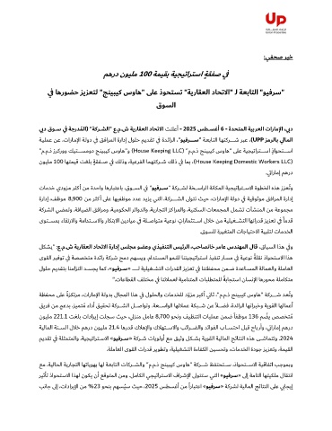 ي بد قوـــس ي ف ةفرد ج ملام "ةكرـــشلا" ع.م.ش ةيراقعلا داحتلاا تنلعأ - 2025 ـــسغأ - 6 ةدحتملا ةيبرعلا تاراملإا ،ي بد