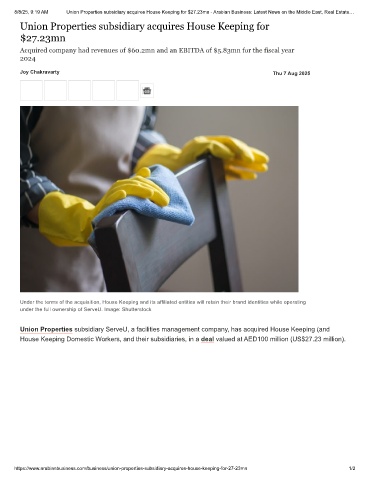 8/8/25, 9:19 AM Union Properties subsidiary acquires House Keeping for $27.23mn - Arabian Business: Latest News on the Middle East, Real Estate…
