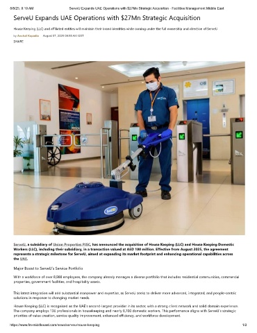 8/8/25, 9:19 AM ServeU Expands UAE Operations with $27Mn Strategic Acquisition - Facilities Management Middle East