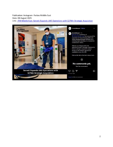 Publication: Instagram- Forbes Middle East Date: 08 August 2025 Link: –FM Middle East: ServeU Expands UAE Operations with $27Mn Strategic Acquisition 2