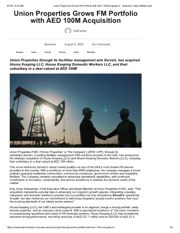 8/7/25, 9:43 AM Union Properties Grows FM Portfolio with AED 100M Acquisition - Business Today Middle East