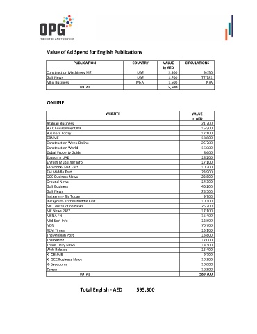Value of Ad Spend for English Publications