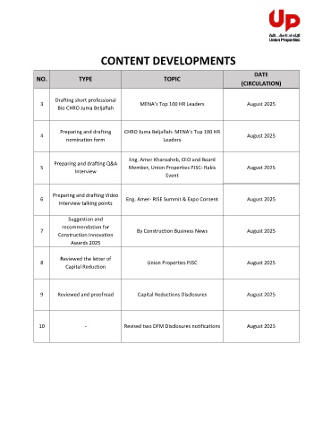5 Member, Union Properties PJSC- Rakis August 2025