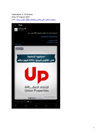 Publication: X- Al Khaleej Date: 07 August 2025 Link: « مهرد نويلم 100ـب »جنيبيك سواه« ىلع ذوحتست »ويفرس 1