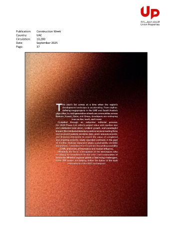Publication: Construction Week Country: UAE Circulation: 10,280 Date: September 2025 Page: 37