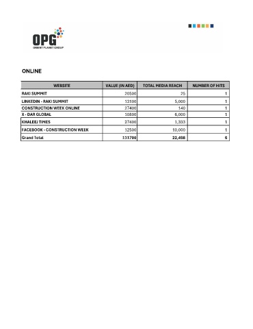 WEBSITE VALUE (IN AED) TOTAL MEDIA REACH NUMBER OF HITS