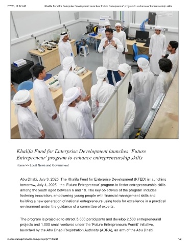 7/7/25, 11:12 AM Khalifa Fund for Enterprise Development launches ‘Future Entrepreneur' program to enhance entrepreneurship skills