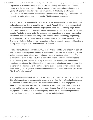 7/7/25, 11:12 AM Khalifa Fund for Enterprise Development launches ‘Future Entrepreneur' program to enhance entrepreneurship skills
