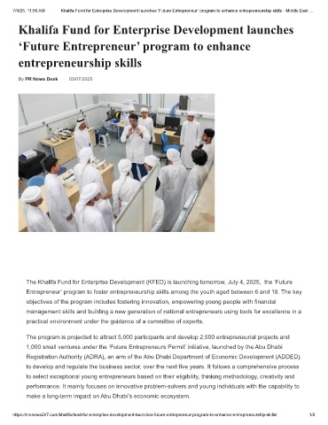 7/4/25, 11:56 AM Khalifa Fund for Enterprise Development launches ‘Future Entrepreneur’ program to enhance entrepreneurship skills - Middle East …