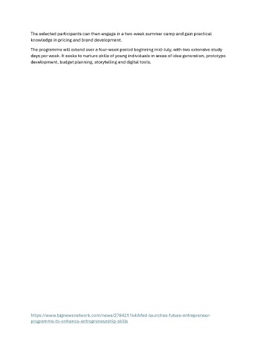 The selected participants can then engage in a two-week summer camp and gain practical