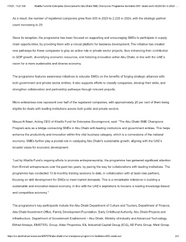 7/3/25, 11:27 AM Khalifa Fund for Enterprise Development’s Abu Dhabi SME Champions Programme facilitates 650+ deals worth AED672m in 2024 -…
