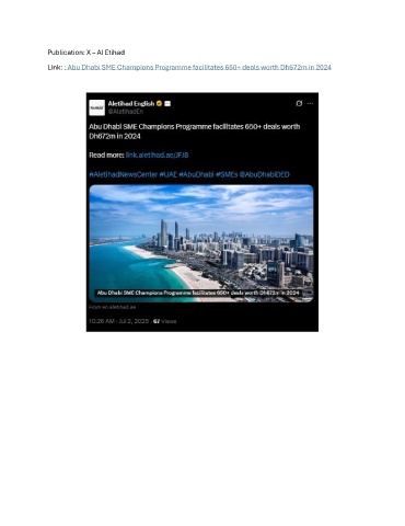 Publication: X – Al Etihad Link: : Abu Dhabi SME Champions Programme facilitates 650+ deals worth Dh672m in 2024
