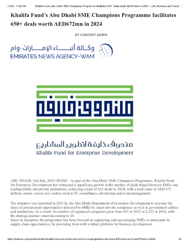 https://totaluae.com/posts/emirates/khalifa-funds-abu-dhabi-sme-champions-programme-facilitates-650-deals-worth-aed672mn-in-2024/ 1/2