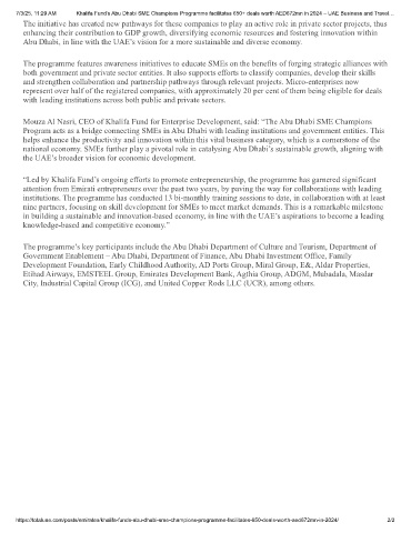 https://totaluae.com/posts/emirates/khalifa-funds-abu-dhabi-sme-champions-programme-facilitates-650-deals-worth-aed672mn-in-2024/ 2/2
