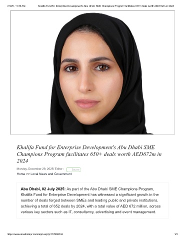 7/3/25, 11:30 AM Khalifa Fund for Enterprise Development's Abu Dhabi SME Champions Program facilitates 650+ deals worth AED672m in 2024