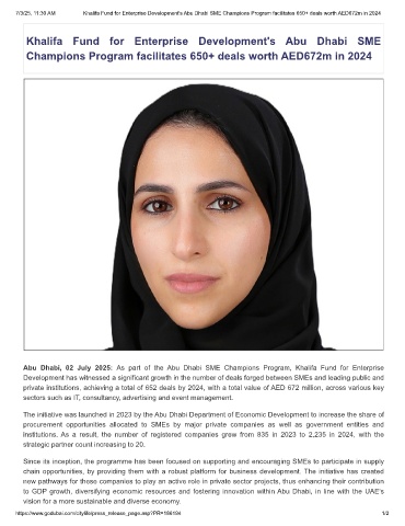 7/3/25, 11:30 AM Khalifa Fund for Enterprise Development's Abu Dhabi SME Champions Program facilitates 650+ deals worth AED672m in 2024