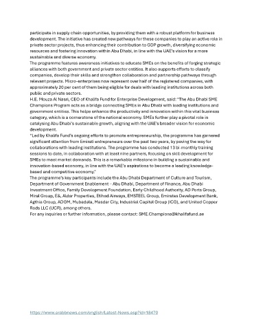 H.E. Mouza Al Nasri, CEO of Khalifa Fund for Enterprise Development, said: “The Abu Dhabi SME