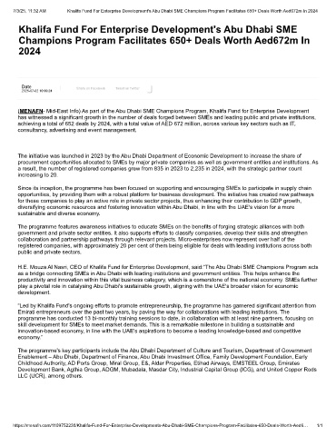https://menafn.com/1109752230/Khalifa-Fund-For-Enterprise-Developments-Abu-Dhabi-SME-Champions-Program-Facilitates-650-Deals-Worth-Aed6… 1/1