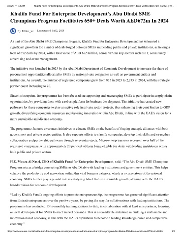 7/3/25, 11:32 AM Khalifa Fund for Enterprise Development’s Abu Dhabi SME Champions Program facilitates 650+ deals worth AED672m in 2024 | W…