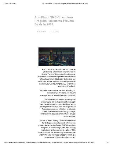 https://www.sharikatmubasher.com/news/article/21493854/abu-dhabi-sme-champions-program-facilitates-182mn-deals-in-2024?lang=en 1/2