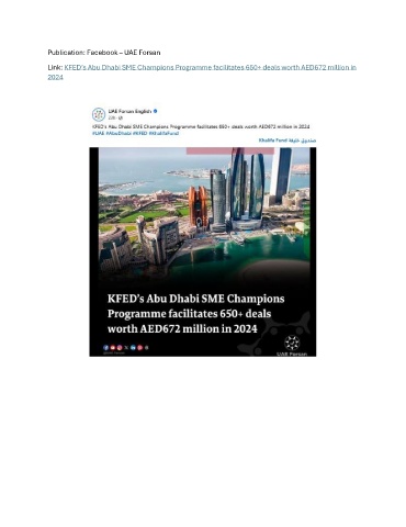 Publication: Facebook – UAE Forsan Link: KFED’s Abu Dhabi SME Champions Programme facilitates 650+ deals worth AED672 million in 2024