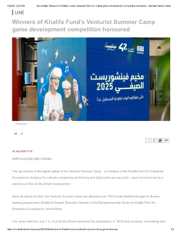 7/22/25, 2:25 PM Abu Dhabi: Winners of Khalifa Fund’s Venturist Summer Camp game development competition honoured - Aletihad News Center