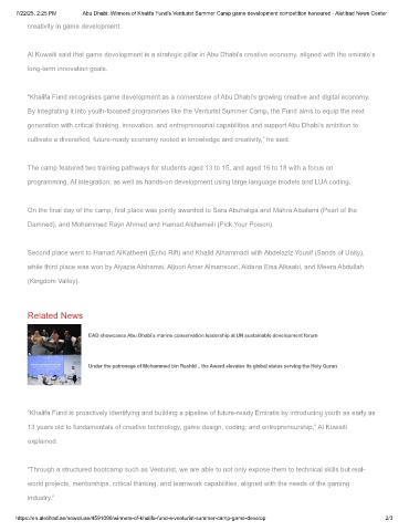 7/22/25, 2:25 PM Abu Dhabi: Winners of Khalifa Fund’s Venturist Summer Camp game development competition honoured - Aletihad News Center